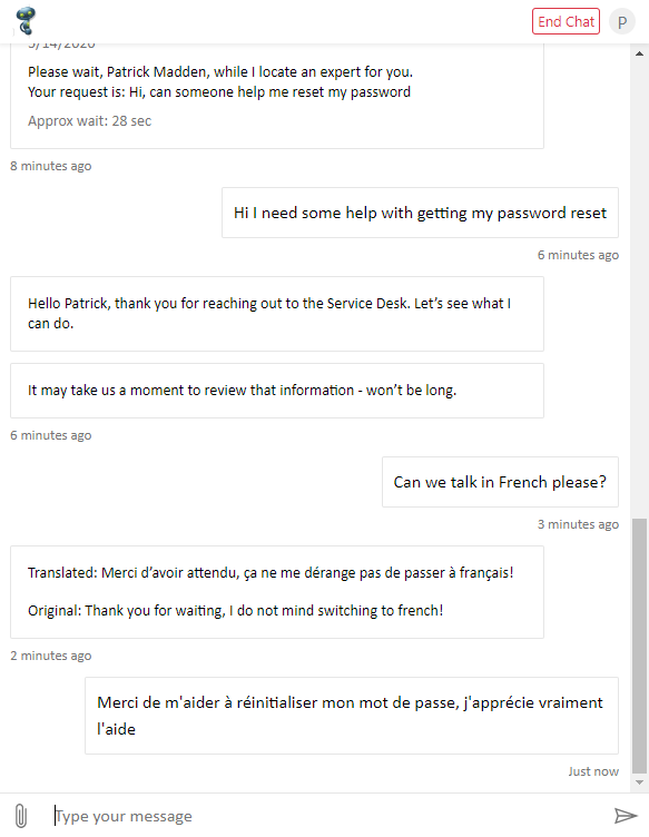 Chime Agent Training Guide (pdf)Before a chat session gets connected to an Agent, you may want to ask your Guest some additional questions about their problem, see if they have a prefered language they would like to get help in, connect them to a knowledgebase that might be able to solve their issue before getting connected to a live agent, or have them chat with a bot and see if that can help resolve their issue.